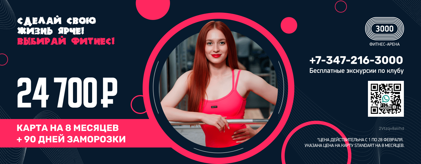 После ознакомления с абонементами в ФИТНЕС-АРЕНУ 3000 остались вопросы? Звоните на рецепцию +7 (347) 216-3000 или приходите в отдел продаж по адресу г. Уфа, ул. Менделеева, дом 134/7 в будни с 10:00 до 21:00, выходные с 10:00 до 20:00.