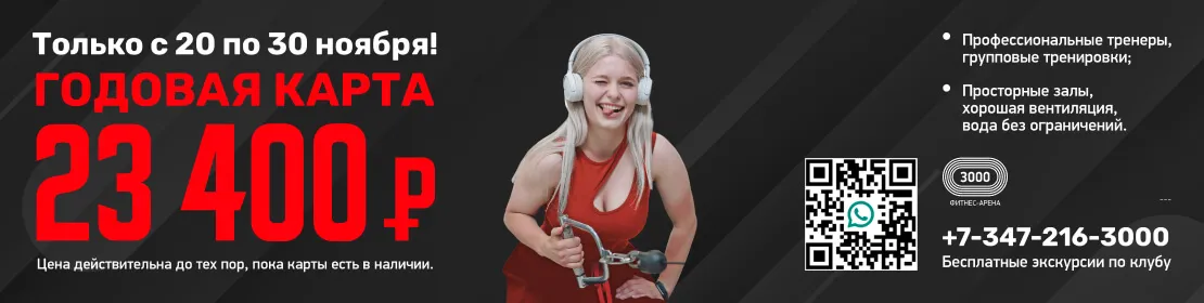После ознакомления с клубной картой ФИТНЕС-АРЕНЫ 3000 остались вопросы? Звоните на рецепцию +7 (347) 216-3000 или приходите в отдел продаж по адресу г. Уфа, ул. Менделеева, дом 134/7 в будни с 10:00 до 21:00, выходные с 10:00 до 20:00.